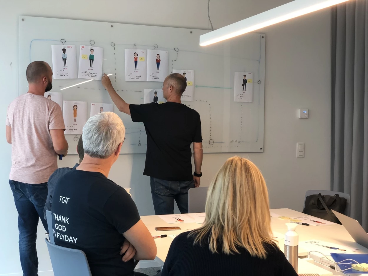 We conducted seven workshops with Aviobook's C-level executives, HR, sales, and marketing teams, and visited the company. The key takeaway was identifying and understanding the structure of personas involved in decisions about airline regulations. These personas ranged from users to operations personnel to decision-makers so that’s why we defined a top-down (targeting hard-to-reach decision-makers) and bottom-up (targeting users who can promote decisions) approach.